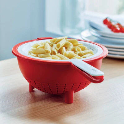 This multi-functional, heat-resistant set of two colanders is stable, drains cold and hot foods well and fits on many different sizes of Tupperware bowls! Use the shallow top of the colander to drain liquids from saucepans and canned goods, while the deeper double strainer works wonderfully for straining up to 1lb of pasta. Or use both parts of this strainer together for an all-around rinse of your produce.