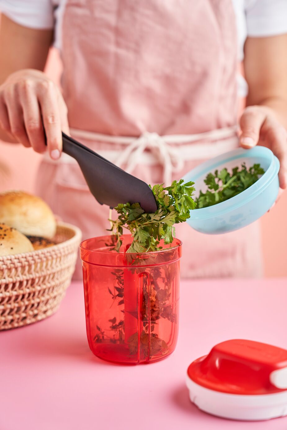 Pour 50 ml water into the base of the Chopper Tall, add 1-2 drops liquid soap and blend for 10 sec. Disassemble the cover, quickly rinse and dry. Your product is clean in just a few seconds.